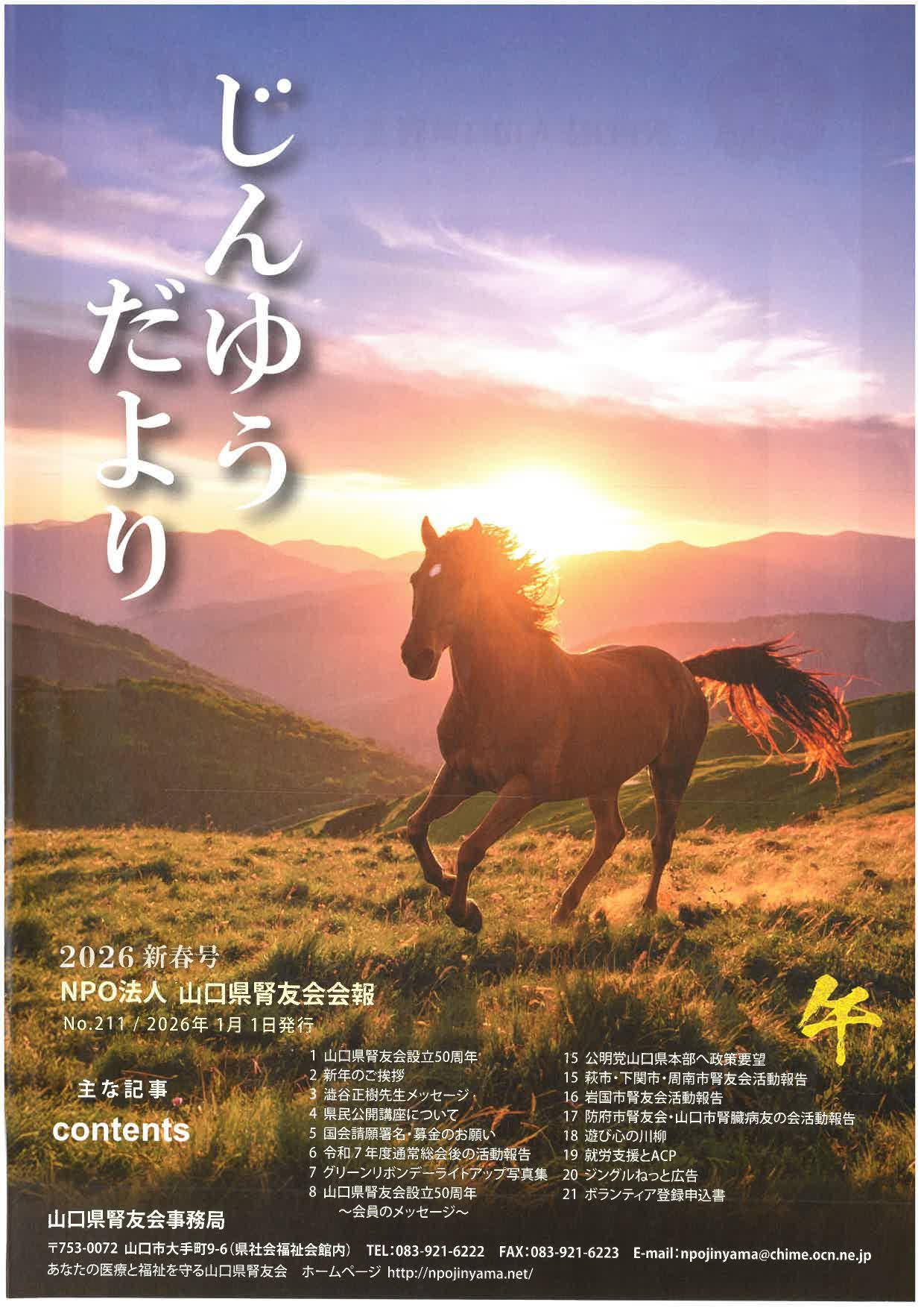 おかげさまで、山口県腎友会は昨年10月に設立50周年という大きな節目を迎えることができました。